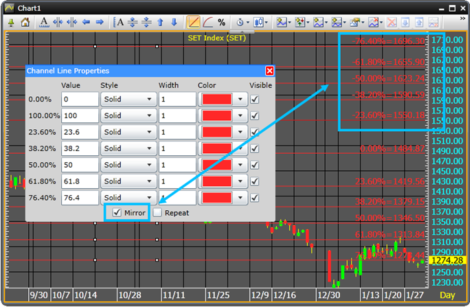 (จุดเริ่มต้นค่าฟิโบนาซี่จะเท่ากับ 0%)
